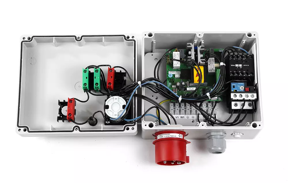 Carcasa de plástico compacta. La función de arranque suave acelera lentamente los motores hasta su velocidad nominal.