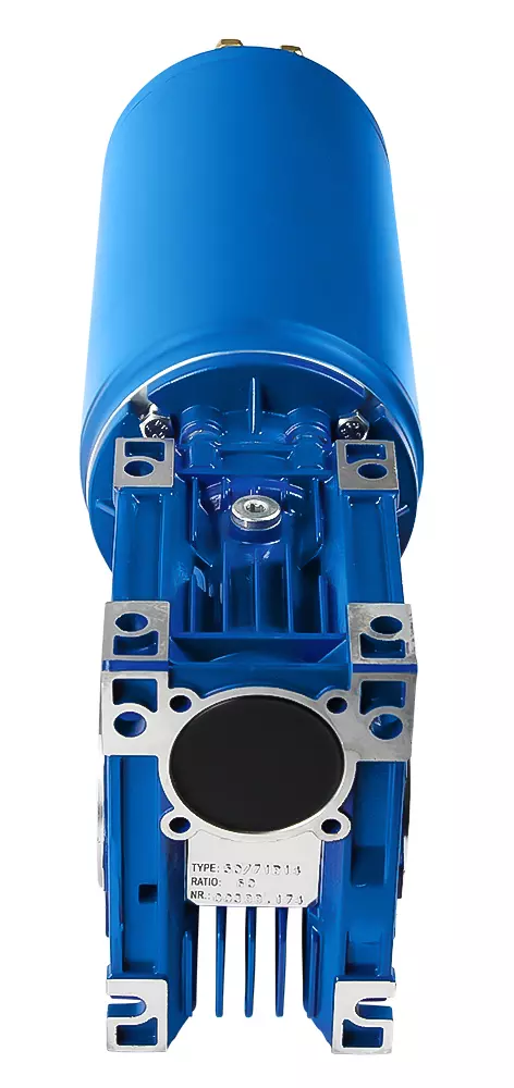Engranaje sinfín con motor DC, IP66, Potencia= 0,80 kW (funcionamiento S2), Velocidad= 100 rpm,