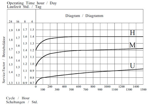 En general, recomendamos utilizar un factor de servicio inferior a 1 para los motorreductores sólo en casos excepcionales.
