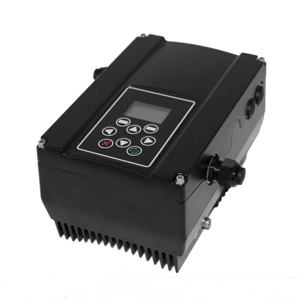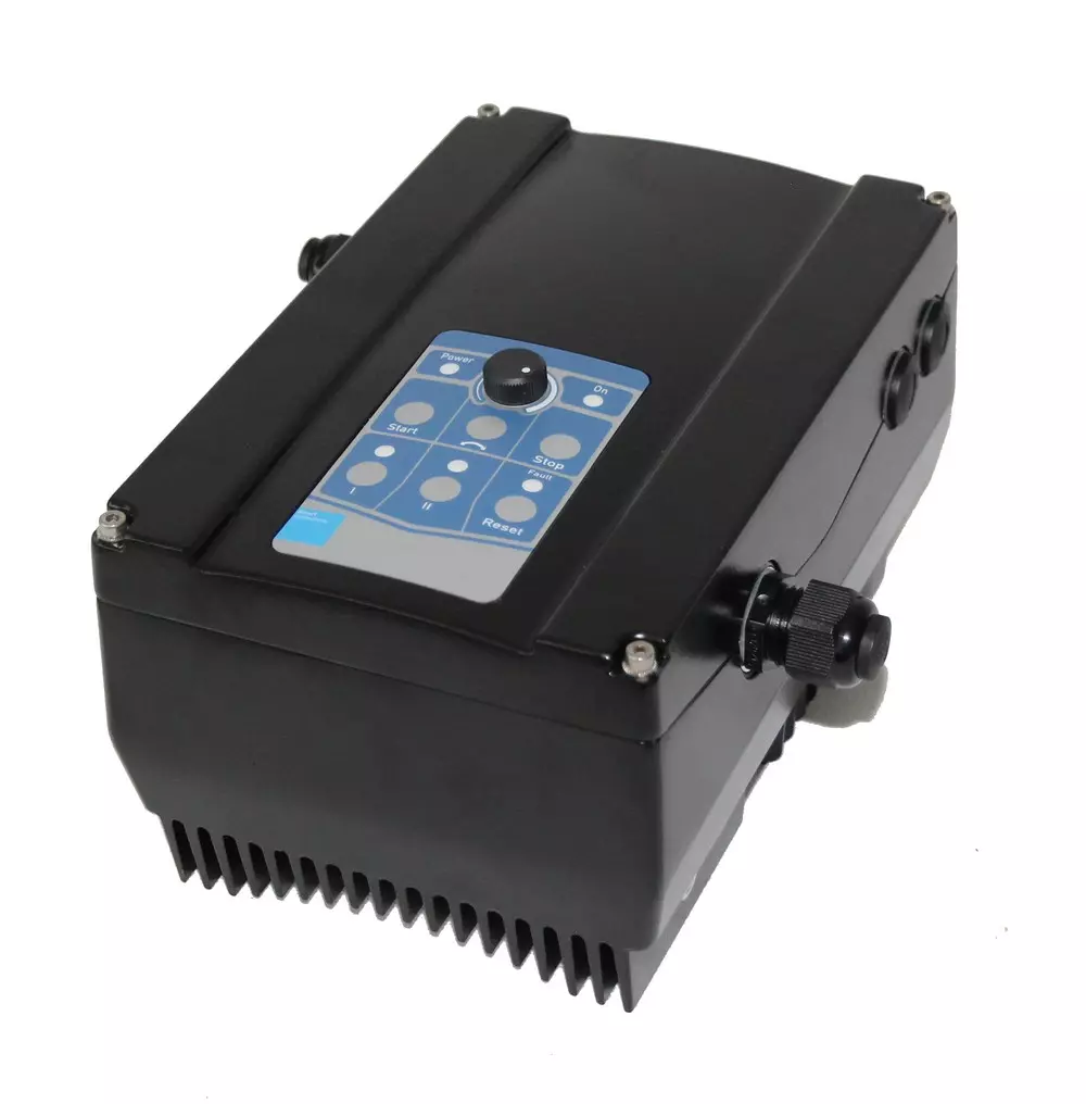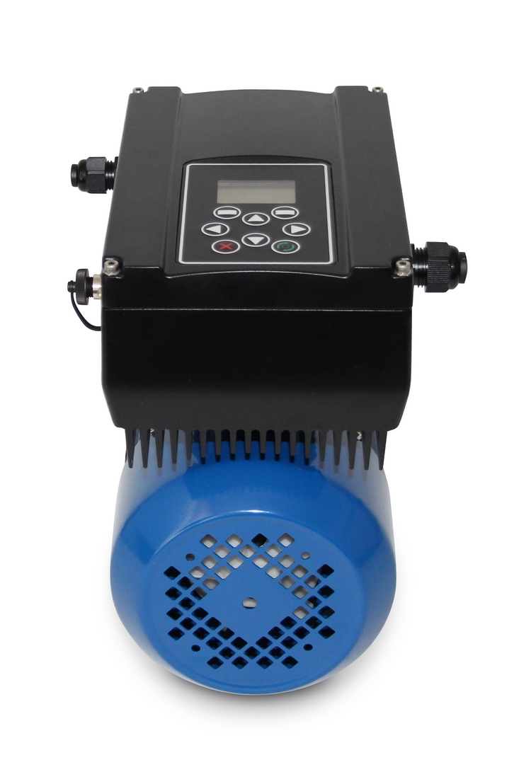 La variante "convertidor de frecuencia con teclado de membrana" contiene un potenciómetro incorporado y ofrece la opción de controlar directamente él