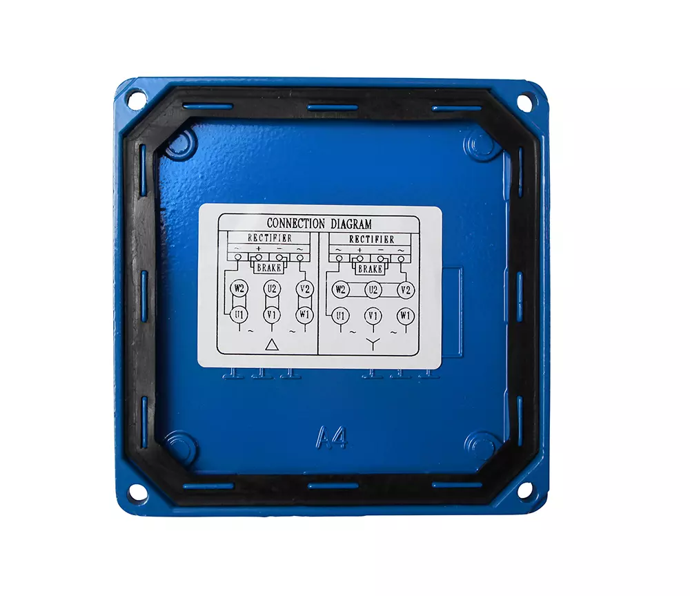 Color= RAL 5010 (azul genciana), Frecuencia= 50/60 Hertz, Clase de protección= IP55, Freno= 4 Nm 230V con rectificador.