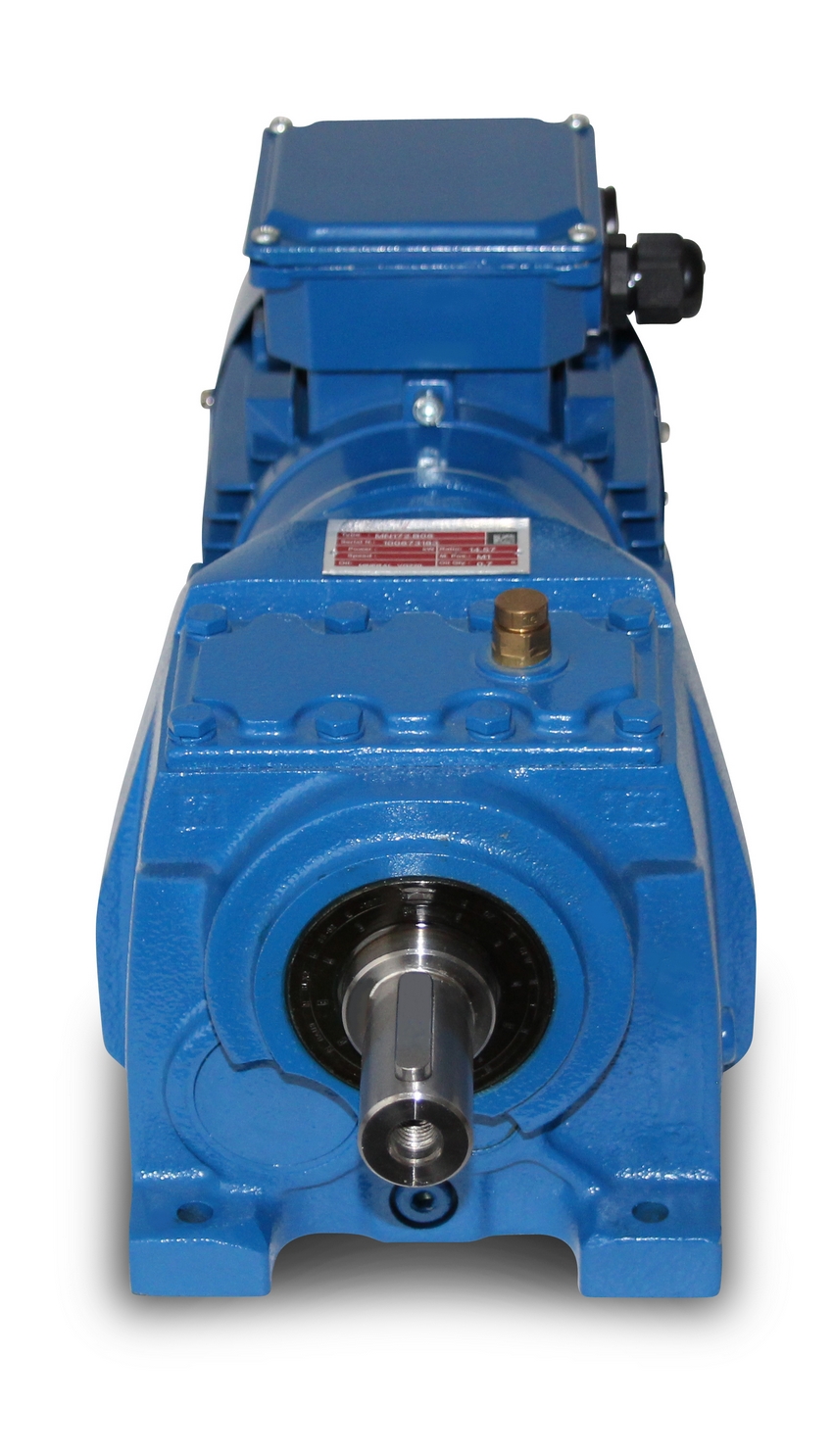 El reductor de engranajes cilíndricos puede funcionar en ambos sentidos de giro y se suministra con llenado de aceite.