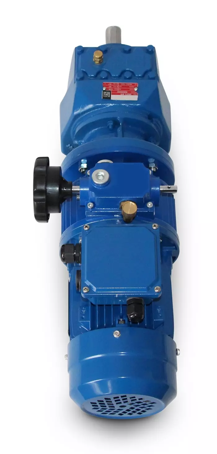 Potencia= 0,37 kW, Velocidad= 10 - 48 rpm, relación de transmisión con unidad de ajuste (i)= 28,9 - 144,6, relación de transmisión solo (i)= 20,66,