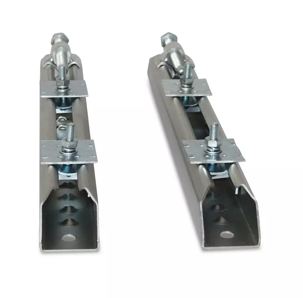 están fabricados en acero y galvanizados. Al ensamblar la transmisión, facilitan la alineación del motor con la polea de la correa. Los rieles de sujeción son adecuados para casi todos los tipos de motores y se caracterizan por su diseño plano y compacto.